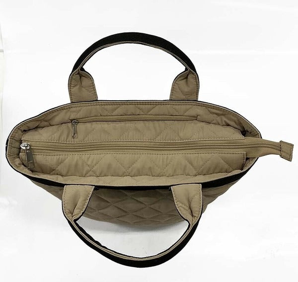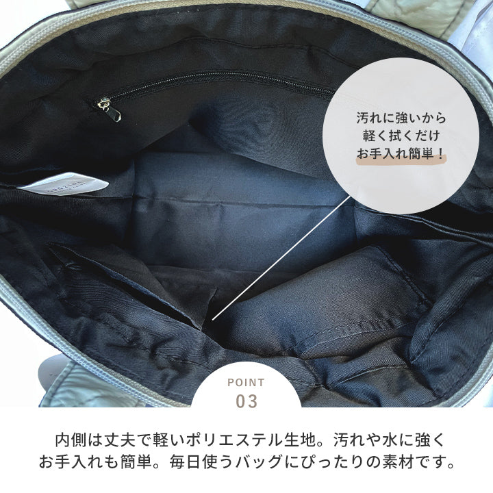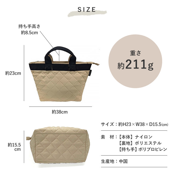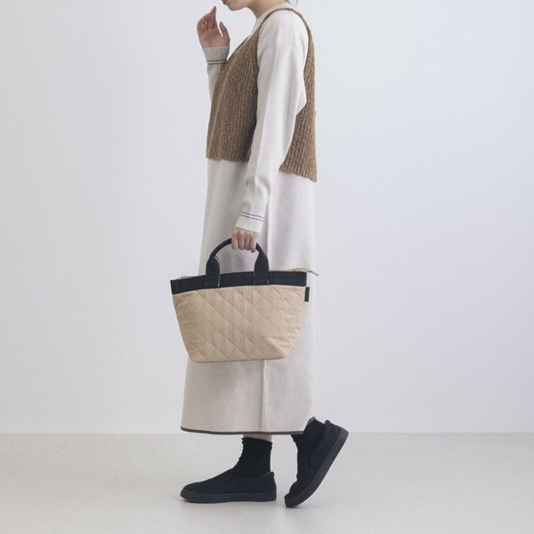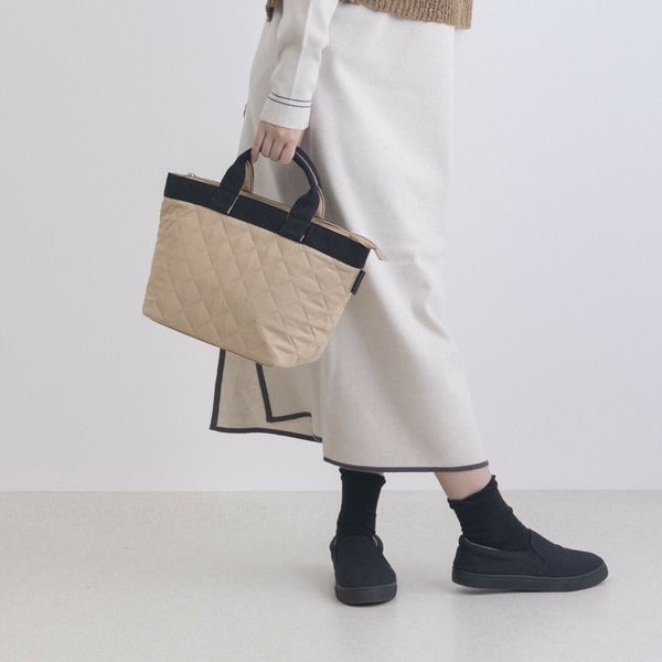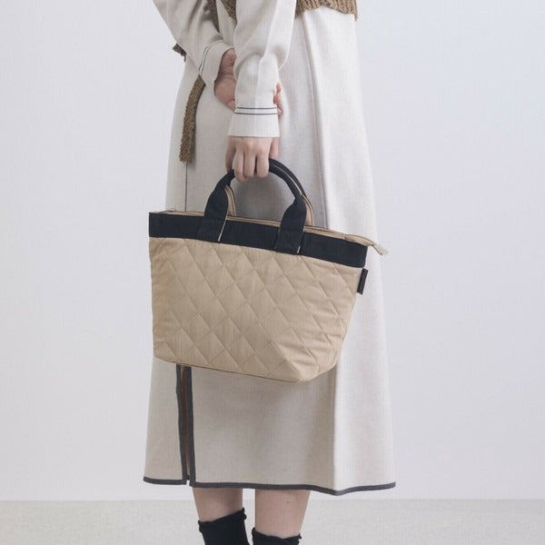 ふんわりとしたキルティング素材がポイントのミニトートバッグ。