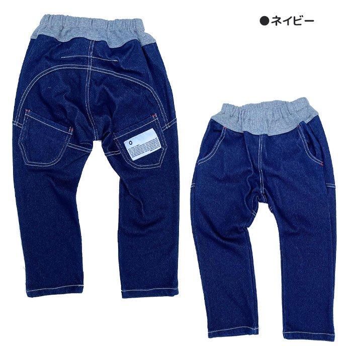 キッズ デニム ストレッチ パンツ サルエルパンツ ズボン ボトムス 子ども 男の子 女の子 細身 スキニー 保育園幼稚園 小学生 オフィシャルチーム