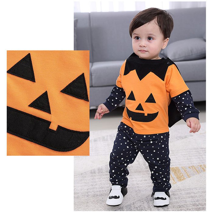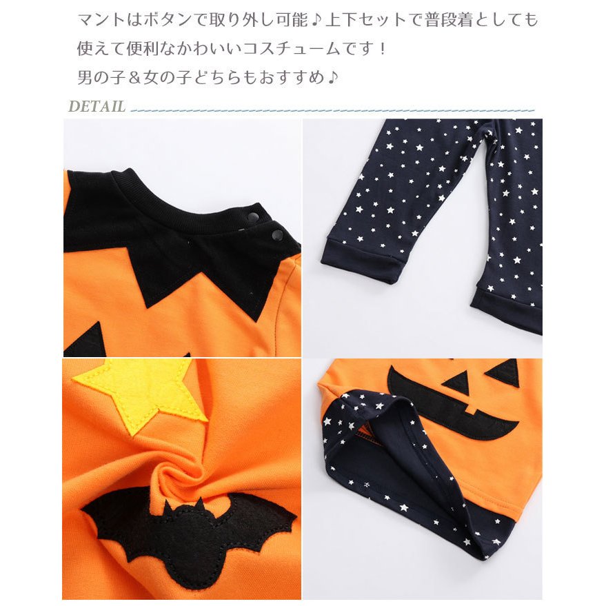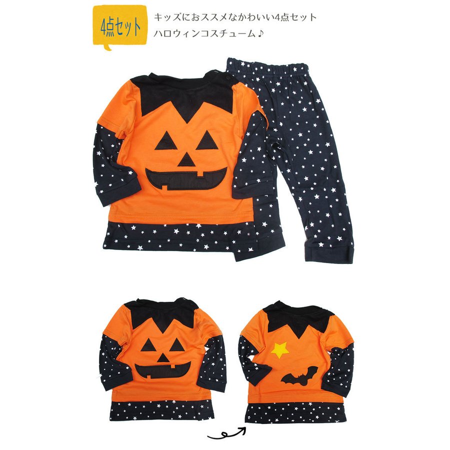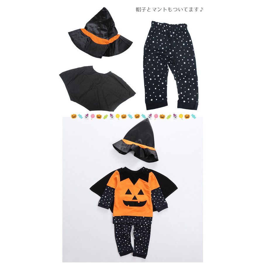ハロウィン コスプレ 子供 仮装 かぼちゃ パンプキン キッズ 赤ちゃん ベビー ロンパース パジャマ 上下セット 男の子 女の子 帽子付き 80 90 100 110 120