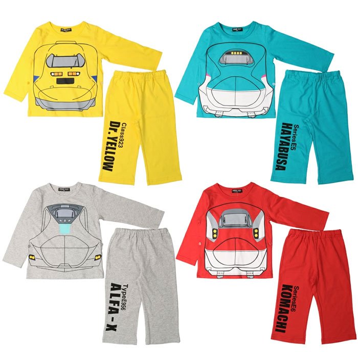 - パジャマ キッズ 子ども 電車 新幹線 こまち ドクターイエロー はやぶさ 長袖 秋 冬 春 保育園 幼稚園 男の子