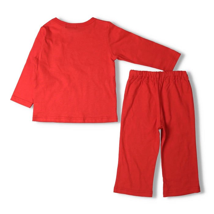 Tシャツ素材、天竺素材の長袖Tシャツと長パンツのパジャマ。