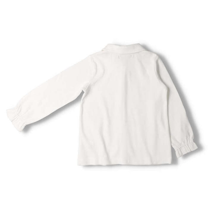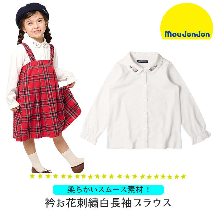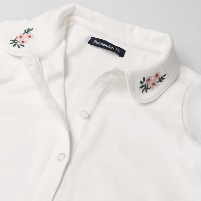 moujonjon White long-sleeved blouse with flower embroidery on the collar