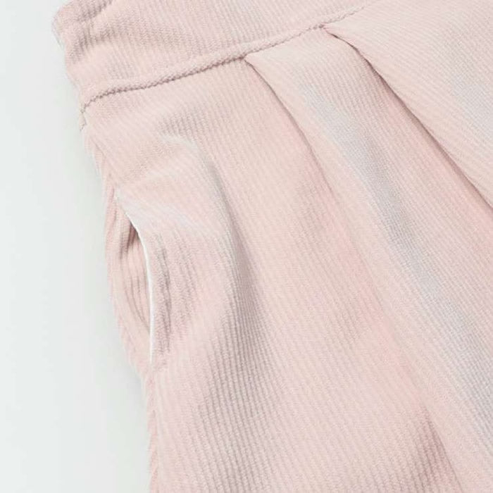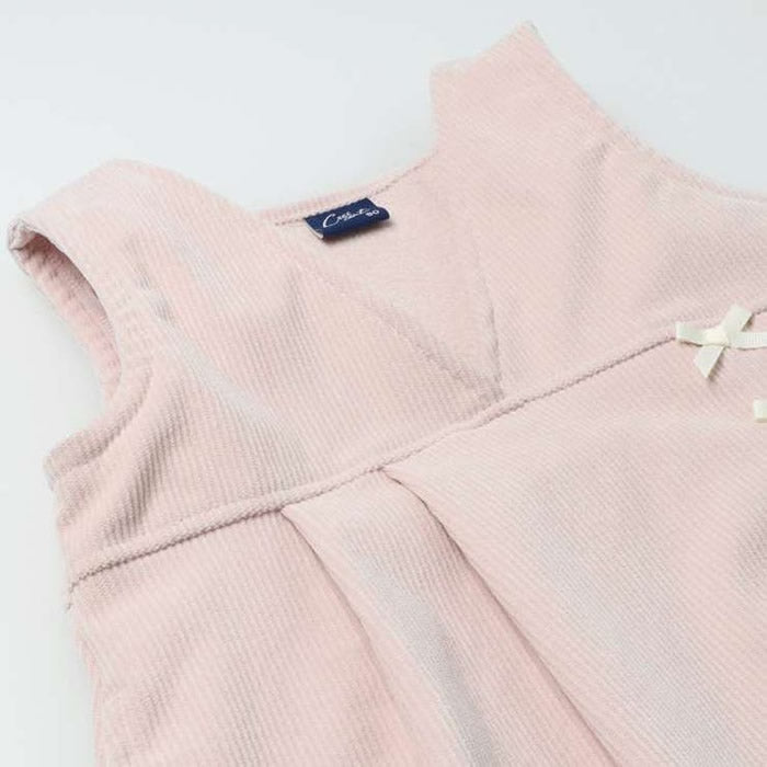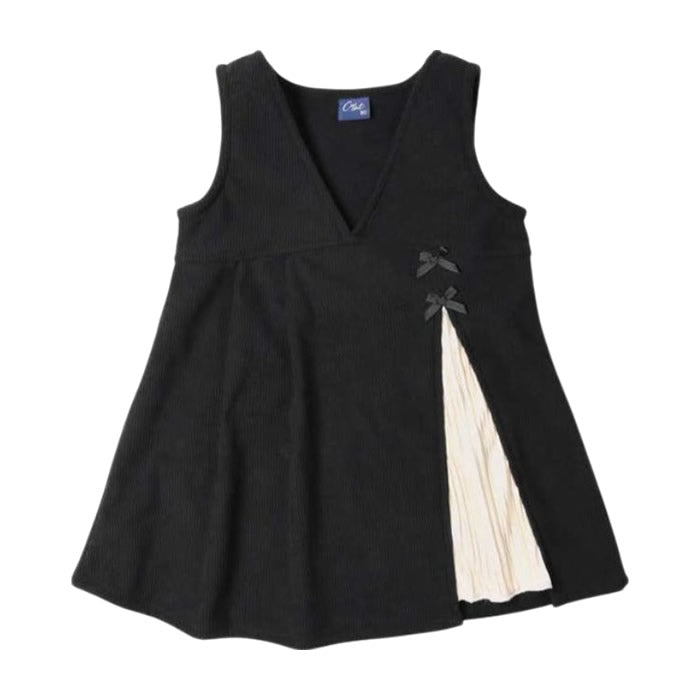 Warm corduroy and corduroy materials are perfect for autumn and winter. A jumper skirt or jumper skirt with an elegant pleated design. The small ribbon motif is also a feminine touch!