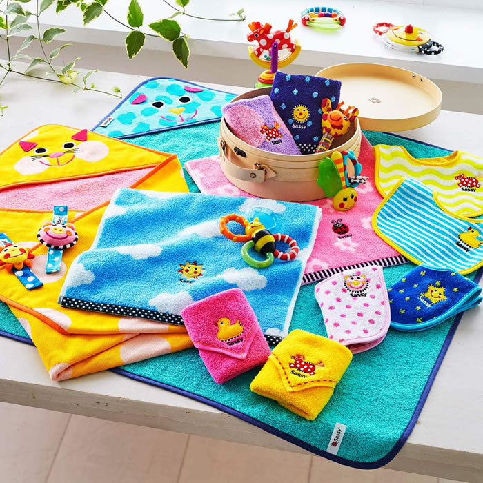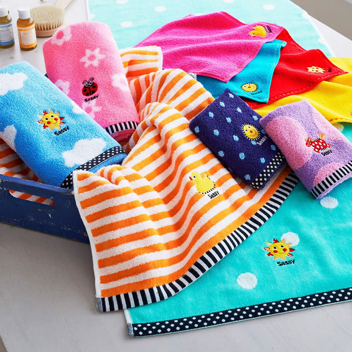 These colorful towels, with Sassy's popular characters as their motif, are soft and fluffy to the touch. The set includes a variety of towels, making them perfect as gifts. The packaging design has also been renewed.