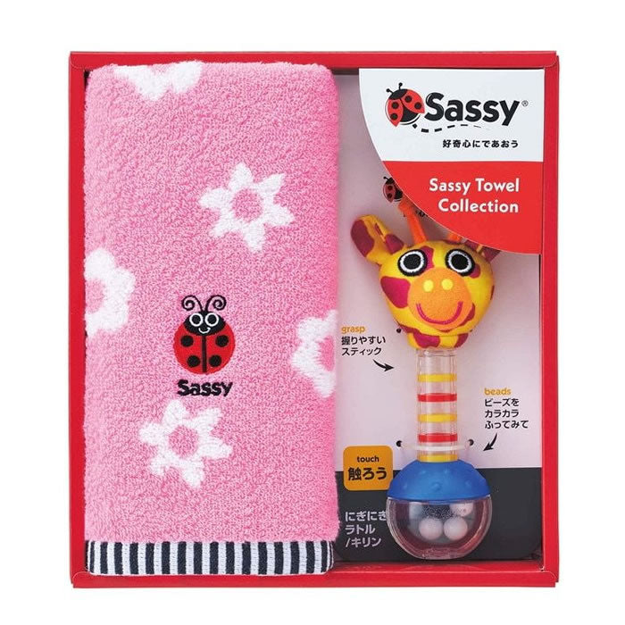 These colorful towels, with Sassy's popular characters as their motif, are soft and fluffy to the touch. The set includes a variety of towels, making them perfect as gifts. The packaging design has also been renewed.