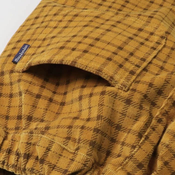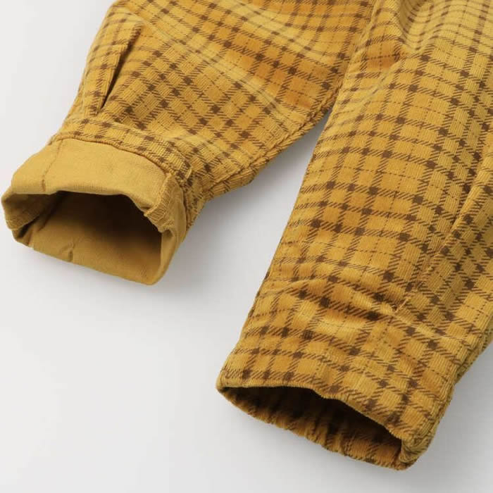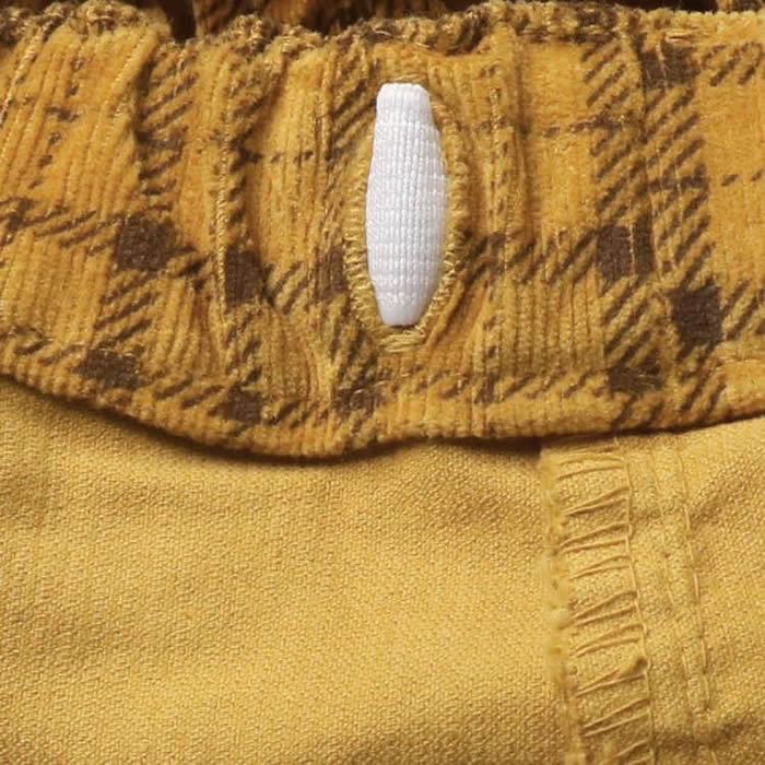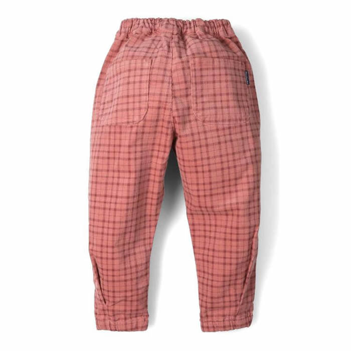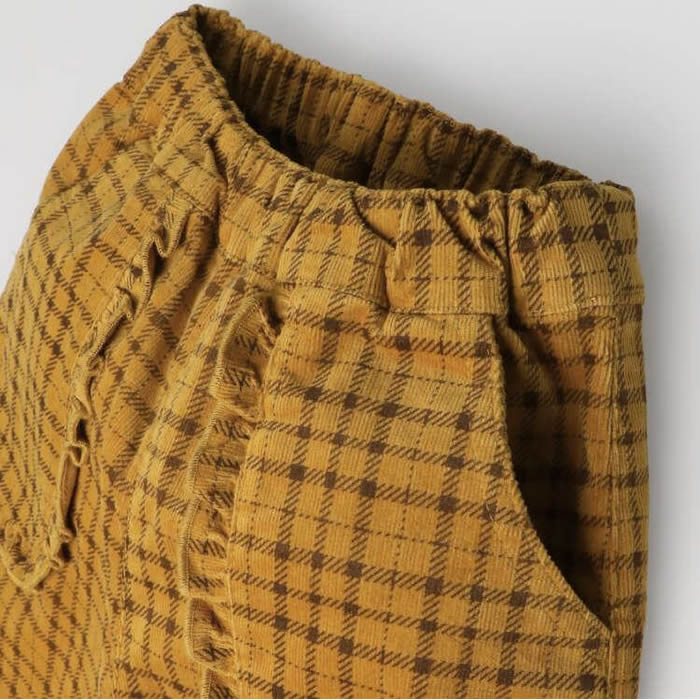 Long pants made of stretch corduroy with a check pattern printed in the same color.