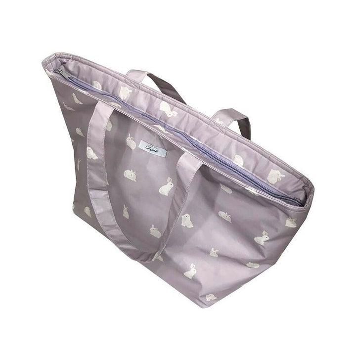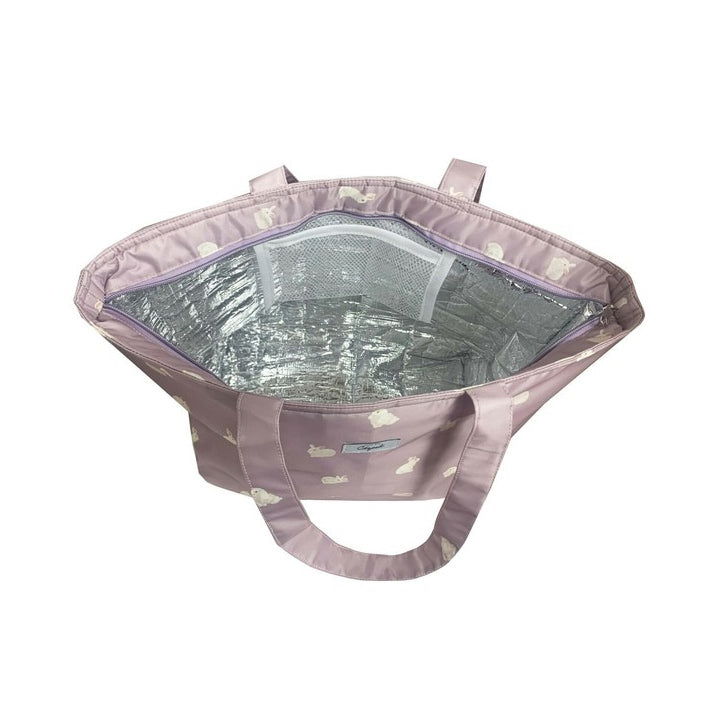 An insulated tote bag with a top zipper that opens easily.