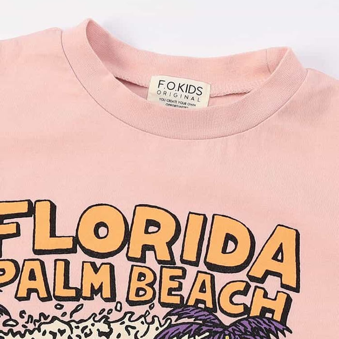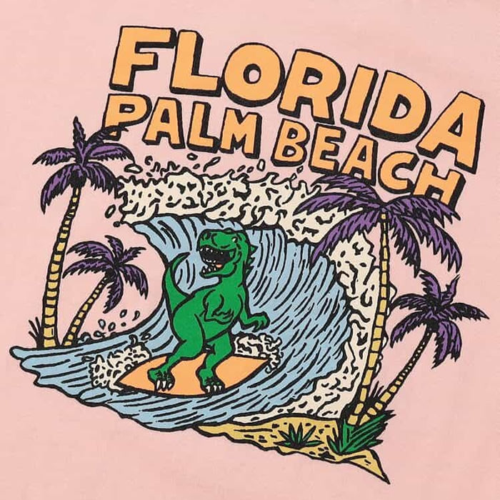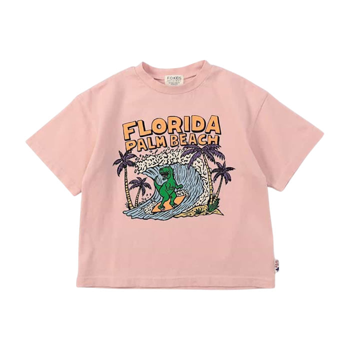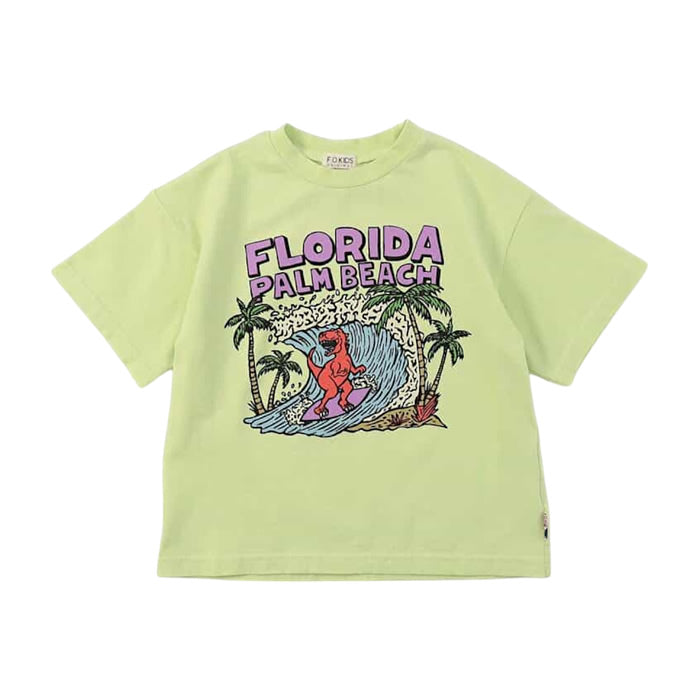 Enjoy a textured everyday casual style with a distressed feel added to American casual style with the FOKIDS short-sleeved T-shirt "PALM BEACH POP DINO T-shirt"!