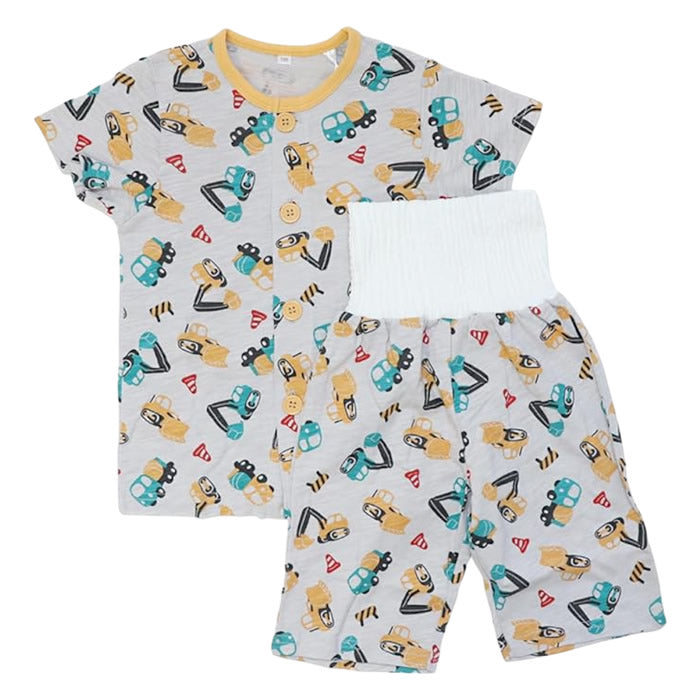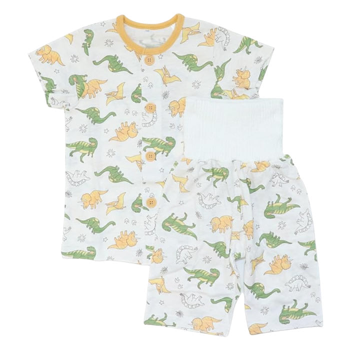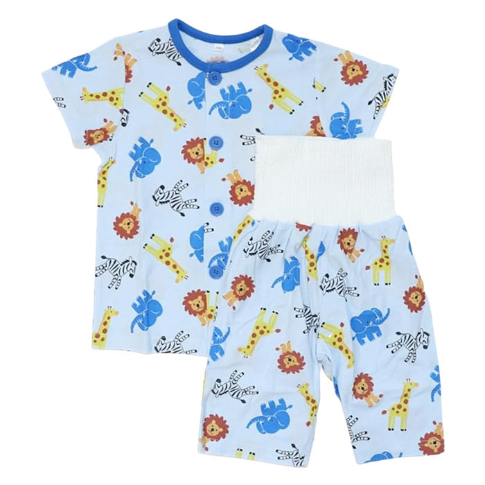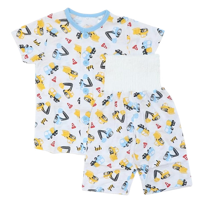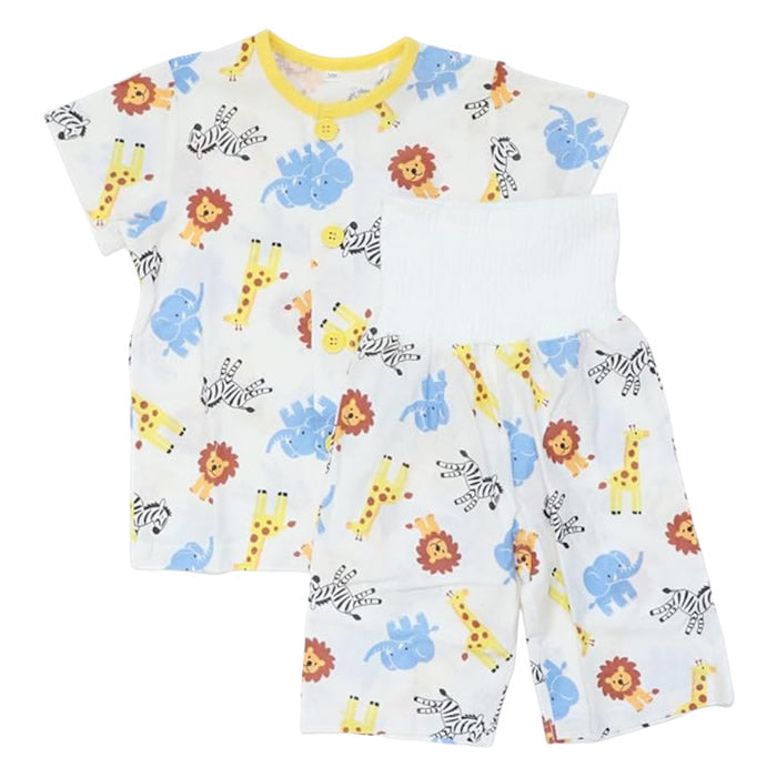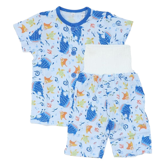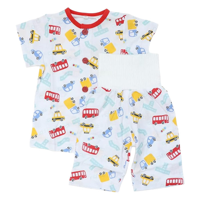 This 100% cotton short-sleeved pajama set includes a belly warmer to keep your tummy warm. With a wide variety of patterns, including dinosaurs, cars, cherries, and donuts, both boys and girls will find something they love. It comes in three fabric types: jersey, satin jersey, and mesh. The breathable and stretchy fabrics make it comfortable even in sweaty seasons. The satin jersey is soft and doesn't stick to the skin, while the mesh is highly breathable. Also recommended for daycare and overnight stays.