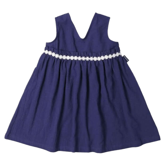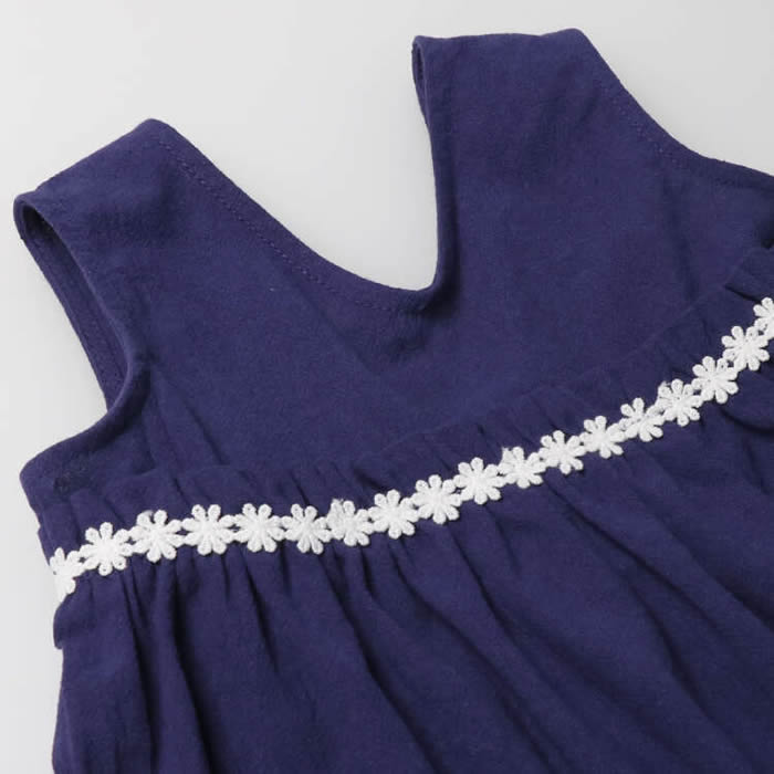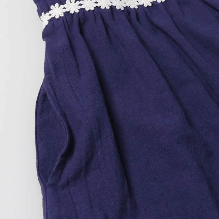 A simple jumper skirt, or jumper skirt, made of washer cloth material. The chest features a floral lace motif. This item is recommended for occasions and semi-formal occasions.