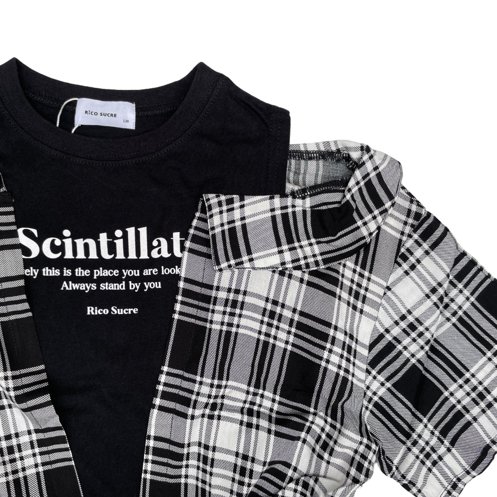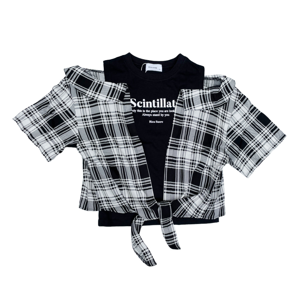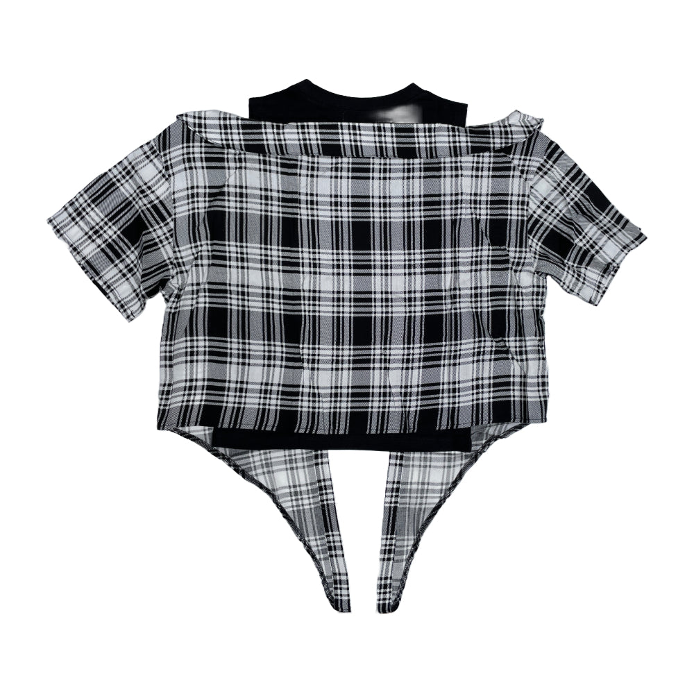 This off-the-shoulder T-shirt features a fake layered checked shirt.