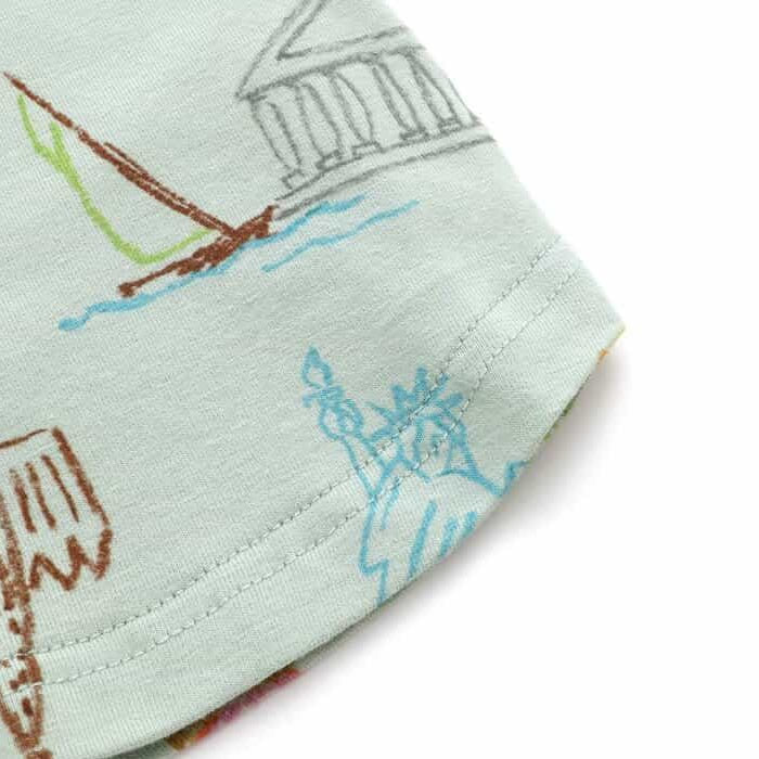 BIT'Z's long-sleeved T-shirt, "World Bread Pattern & City Pattern Long-Sleeved T-Shirt," is popular for its pop and colorful design.