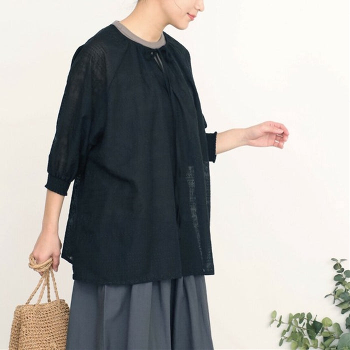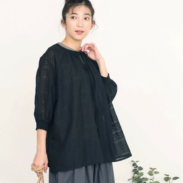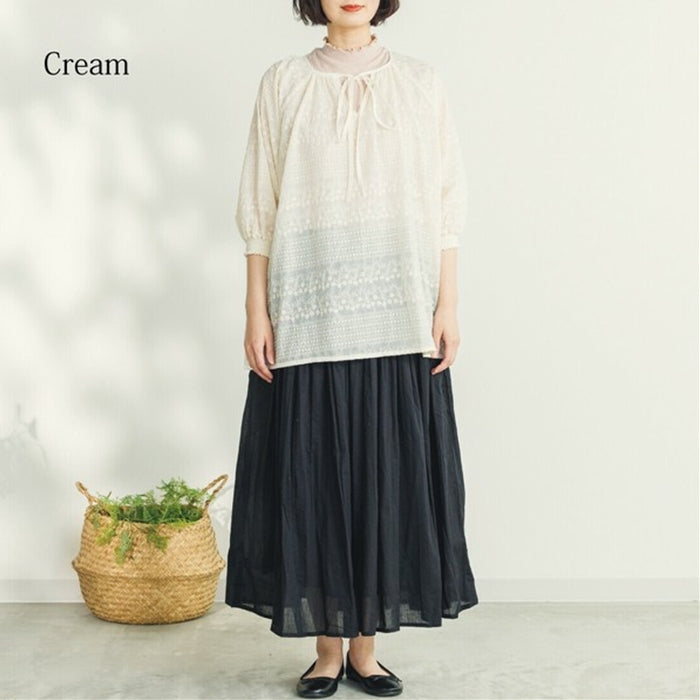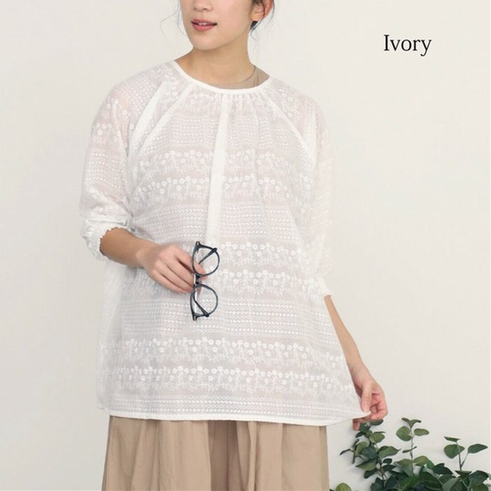 This pullover has a cute silhouette with plenty of gathers and all-over embroidery.