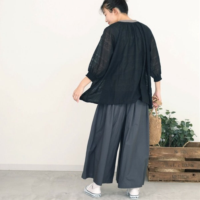 It can be worn both front and back, making it a two-way piece that suits both casual and feminine looks.