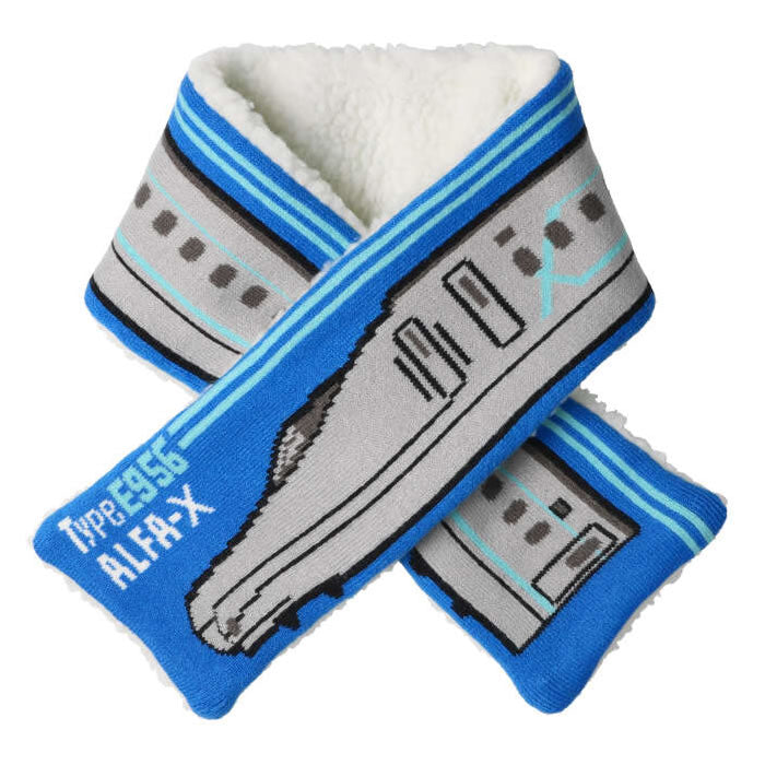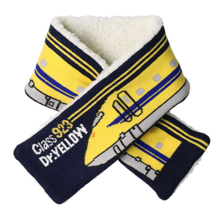 Scarves featuring the popular Shinkansen trains Hayabusa, Doctor Yellow, and Alpha X, as well as the freight train Blue Thunder pattern.