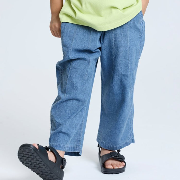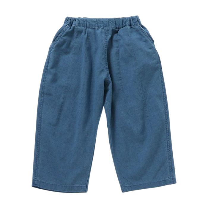 Long pants made of indigo sateen material.