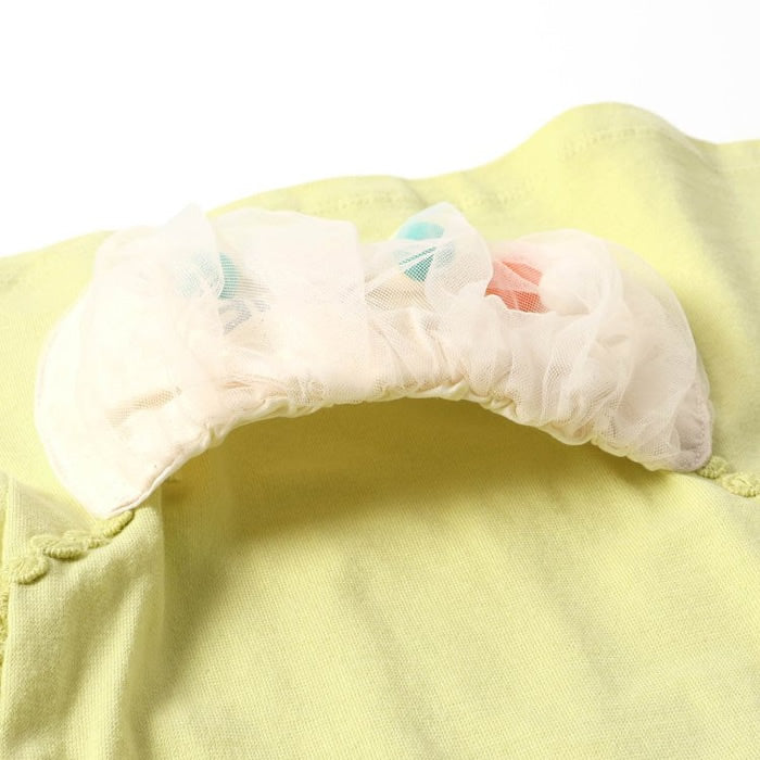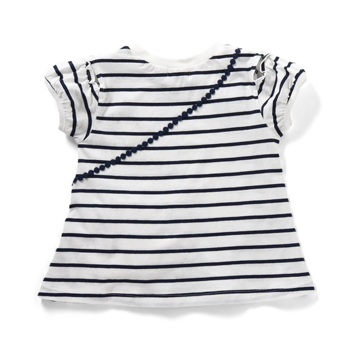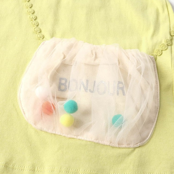 This pouch is layered with tulle and decorated with colorful pom-poms, giving it a casual and pop feel.