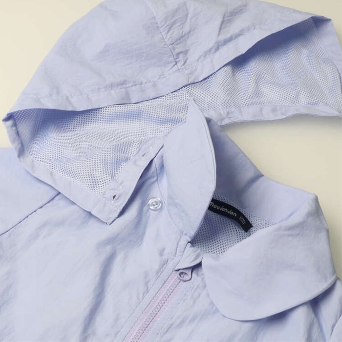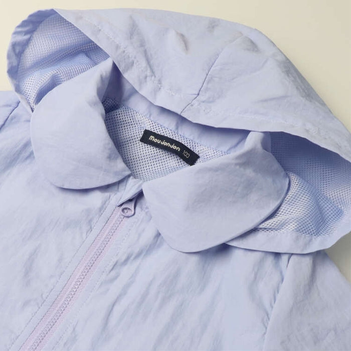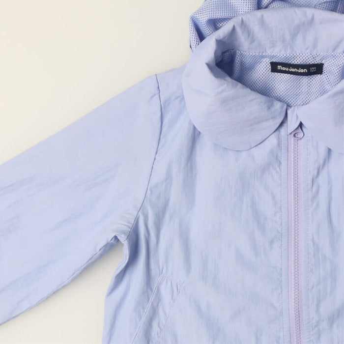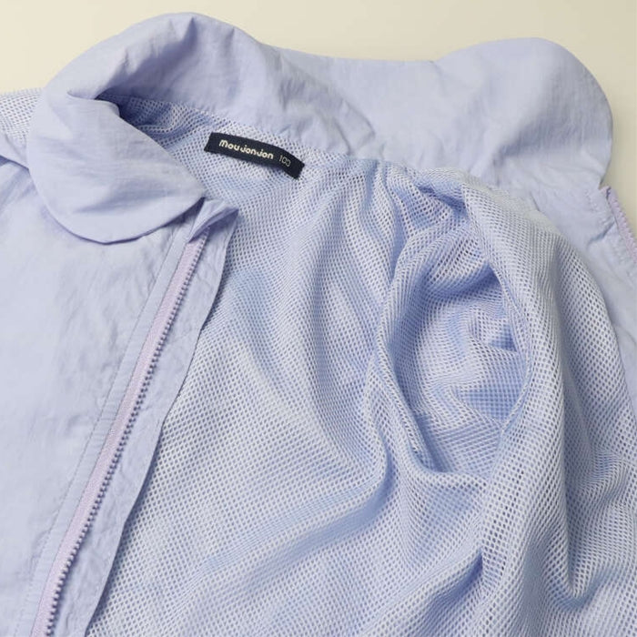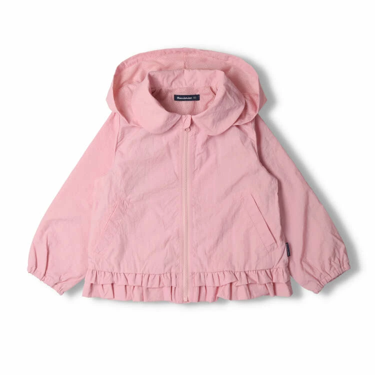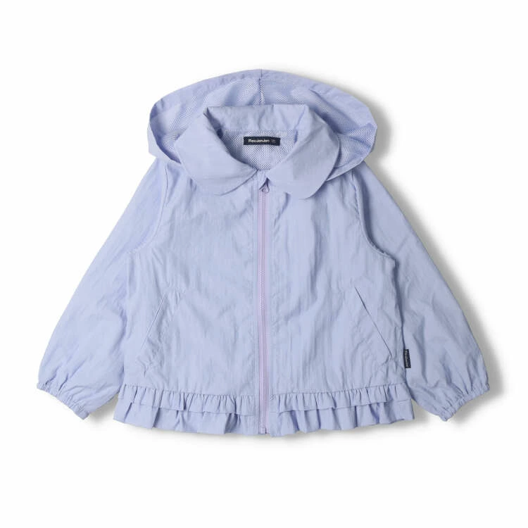 丸い衿と裾のフリルが女の子らしいキュートなデザインの裏メッシュジャケット。