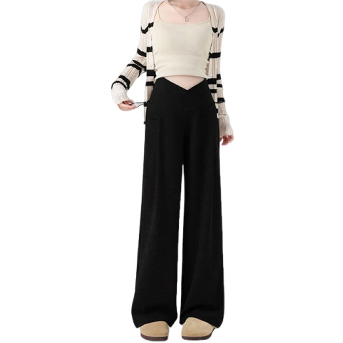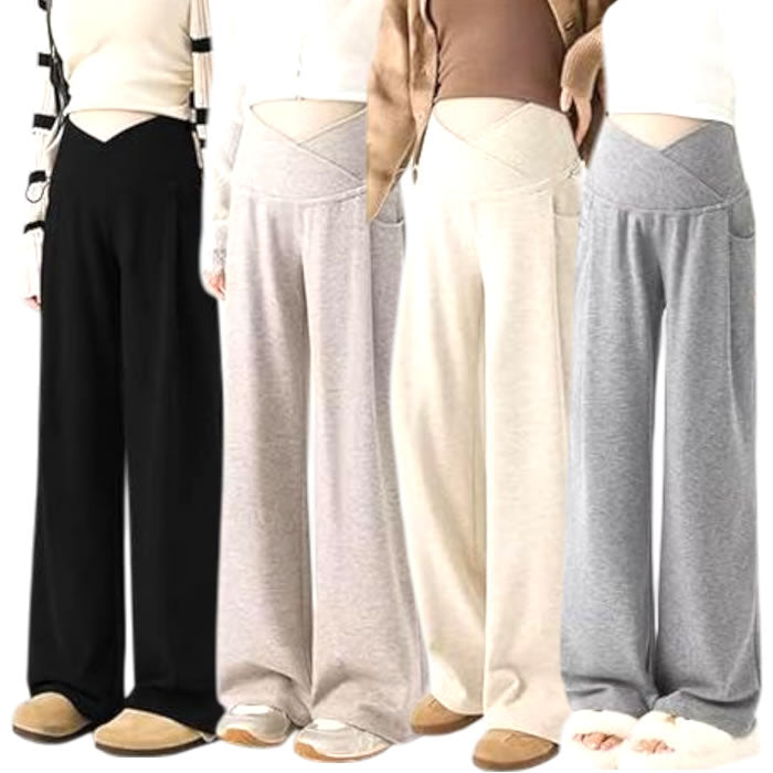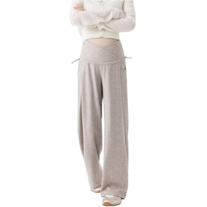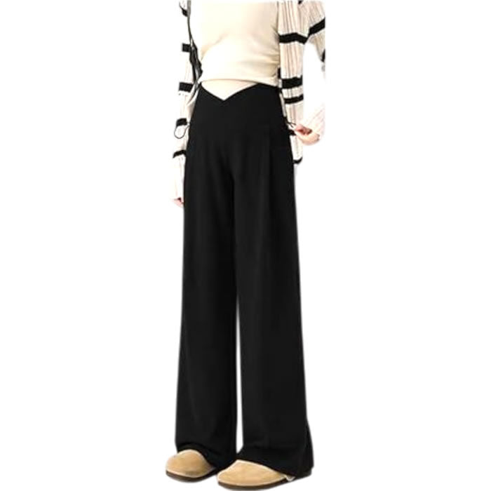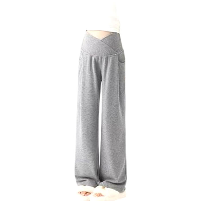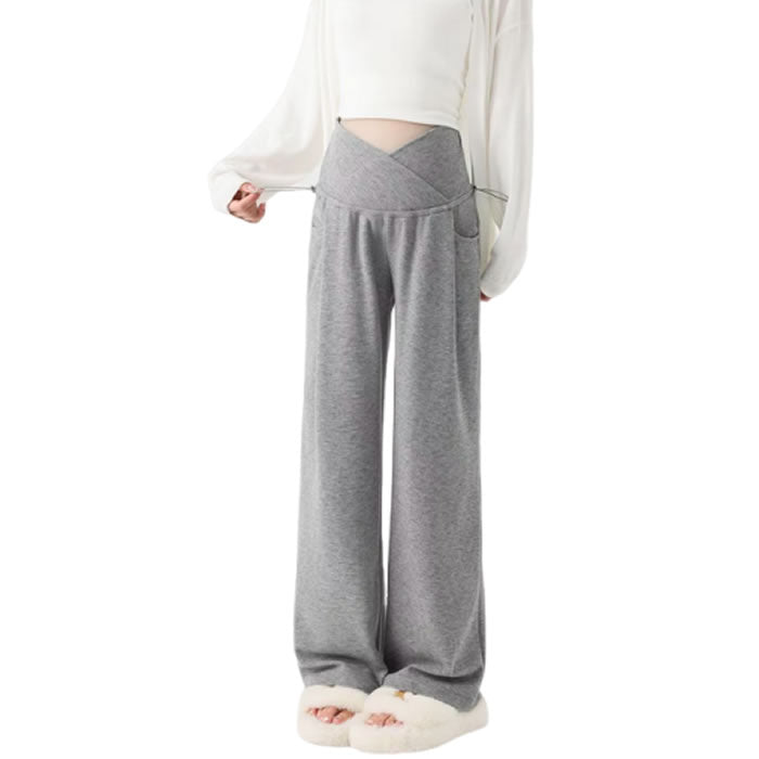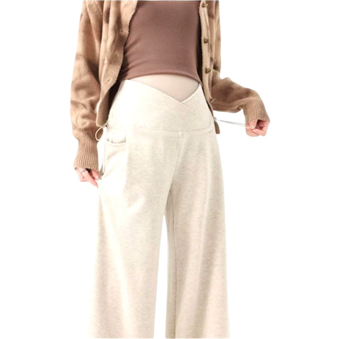 脚長効果を演出するワイドシルエットで、妊娠中でもスタイリッシュに。柔らかいニット素材で動きやすく、一日中快適に過ごせます。