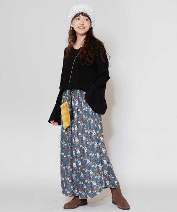 無地のトップスと合わせるのはもちろん、ワンピースの下からちらりと見せるのもおすすめ。