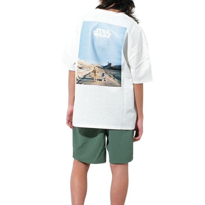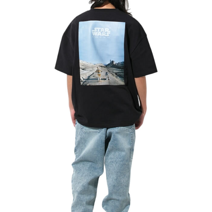 スター・ウォーズ エピソード6 ジェダイの帰還からルークの使者としてジャバ・ザ・ハットの宮殿へ向かうR2-D2とC-3POをプリントした当店オリジナルデザインのTシャツ。