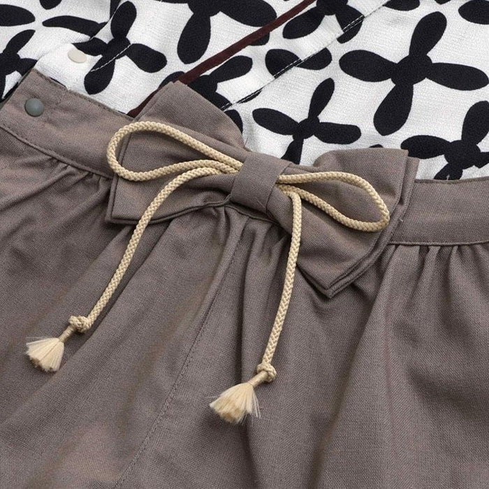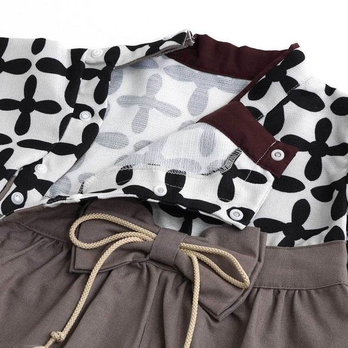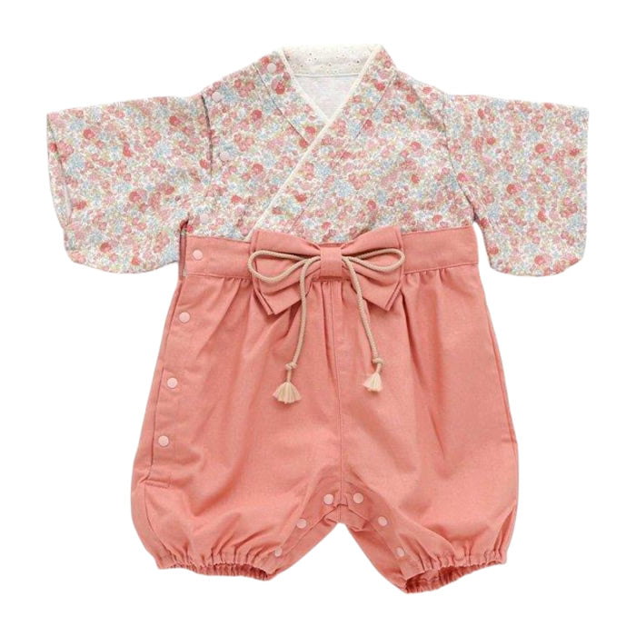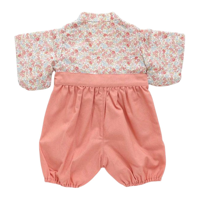 サイド開きデザインで着せやすく 可愛らしい姿に華を添える和柄の袴風カバーオールです