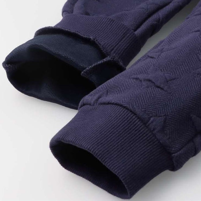 星柄のキルト、キルティング素材を使用したロングパンツです。中綿入りのポコポコとした立体感が特徴のデザイン。程よい肉感のある生地で、冬でも暖かく過ごせます。裾リブデザインで、カジュアルなスタイルにオススメ!前後にポケットが付いていて、後ろの右ポケットにはムージョンジョンの飾りネームが付いているのもポイントです。同じ星柄キルトを使ったトレーナー(M52601)があるので、兄弟姉妹やお友達と男女でペア、リンクコーデ、お揃い、おそろいコーディネートも楽しめます!