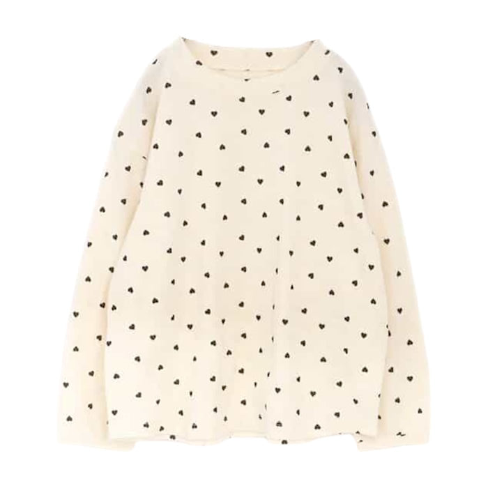 着ていると元気な気分になれる、かわいい総柄デザインの長袖Tシャツ。