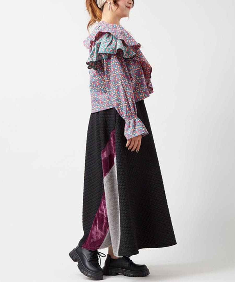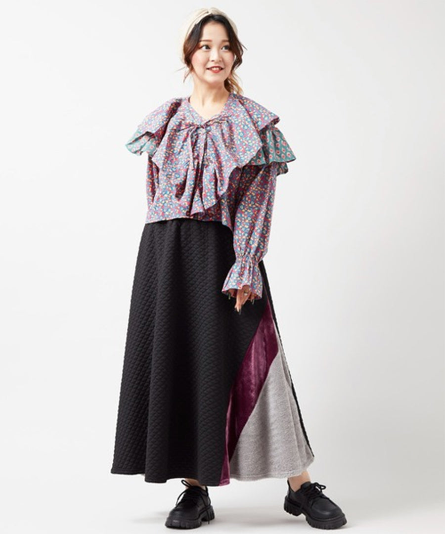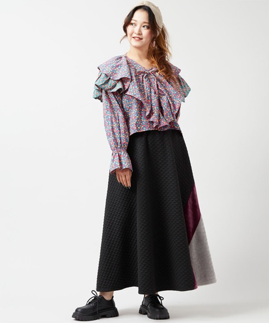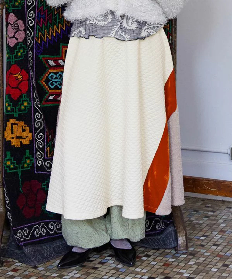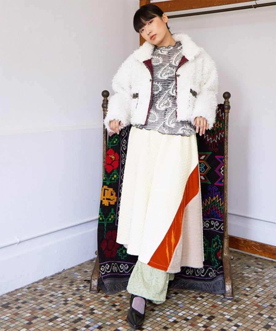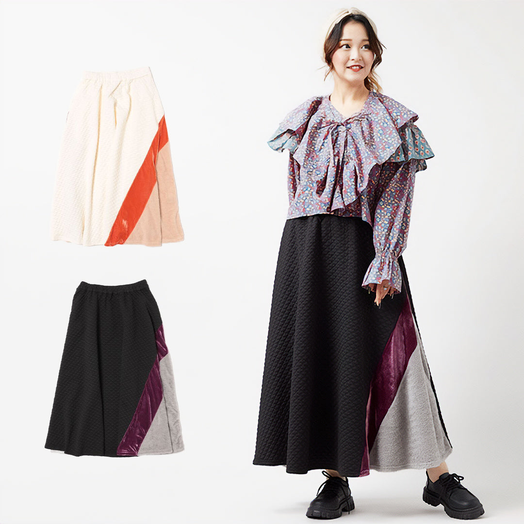 温かいふっくらとした素材感と張りのある生地により、ボリューム感がしっかり出る型崩れしないスカート。
