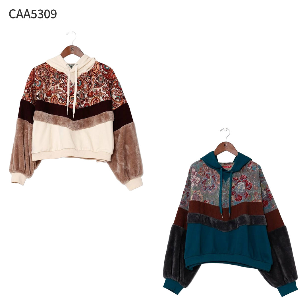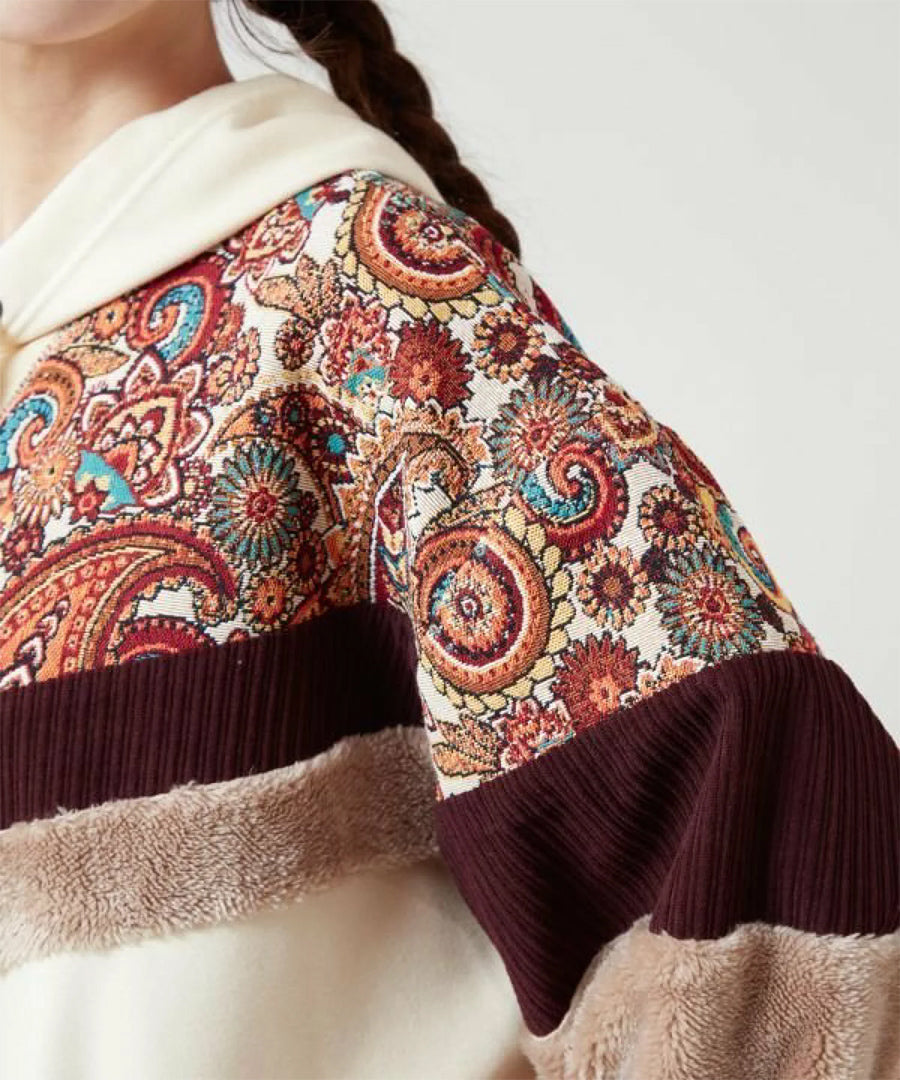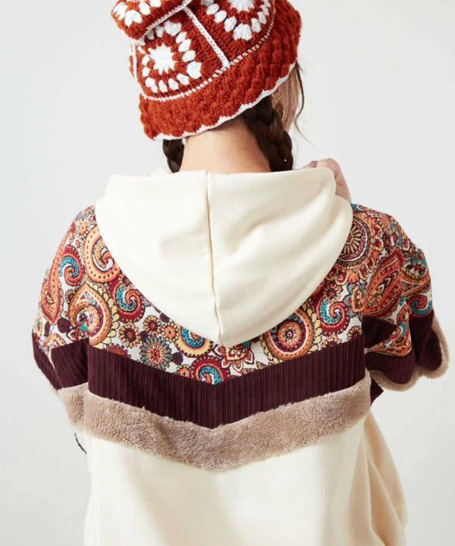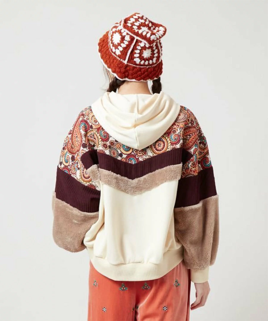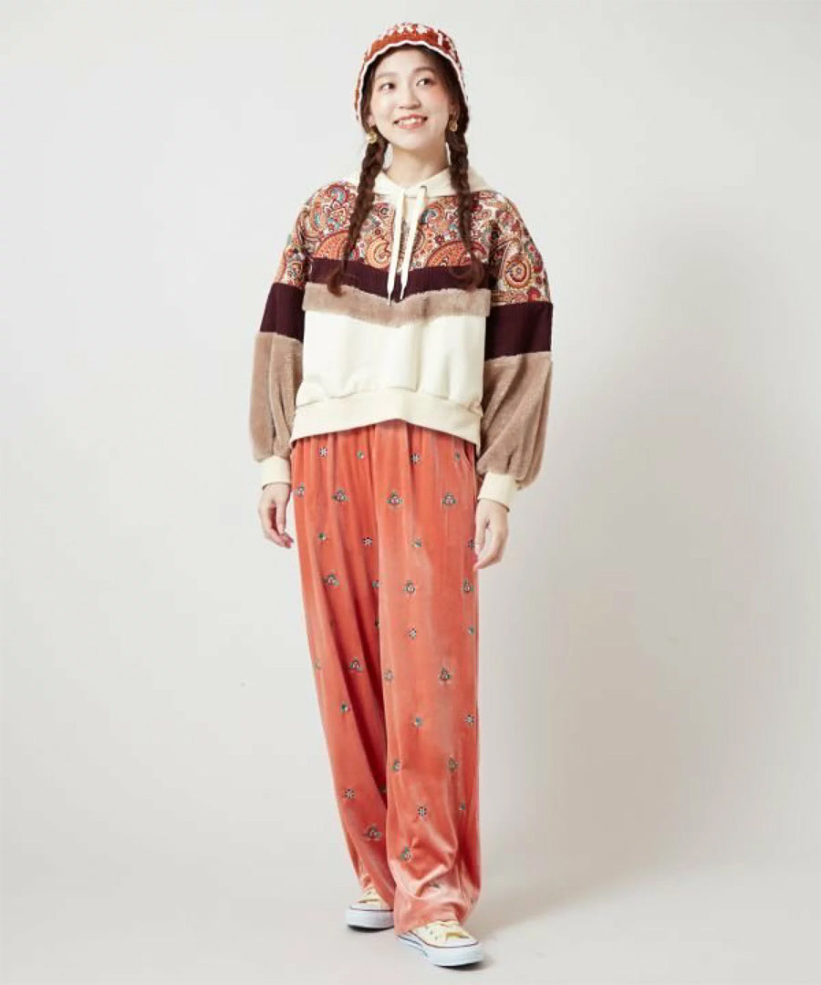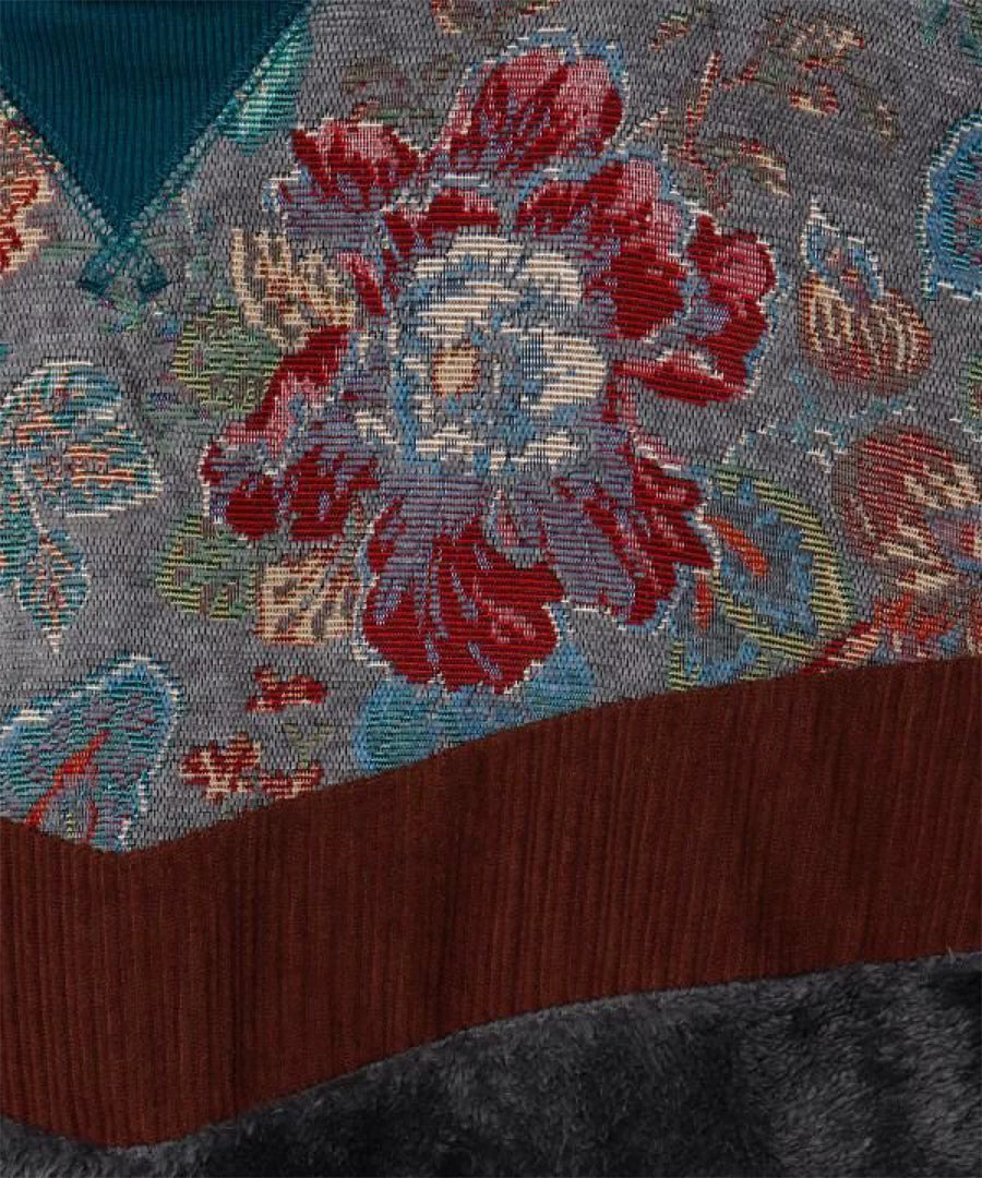 ゴブラン、裏毛、ファー、コーデュロイと4種の異なる生地を贅沢にパッチワークした、