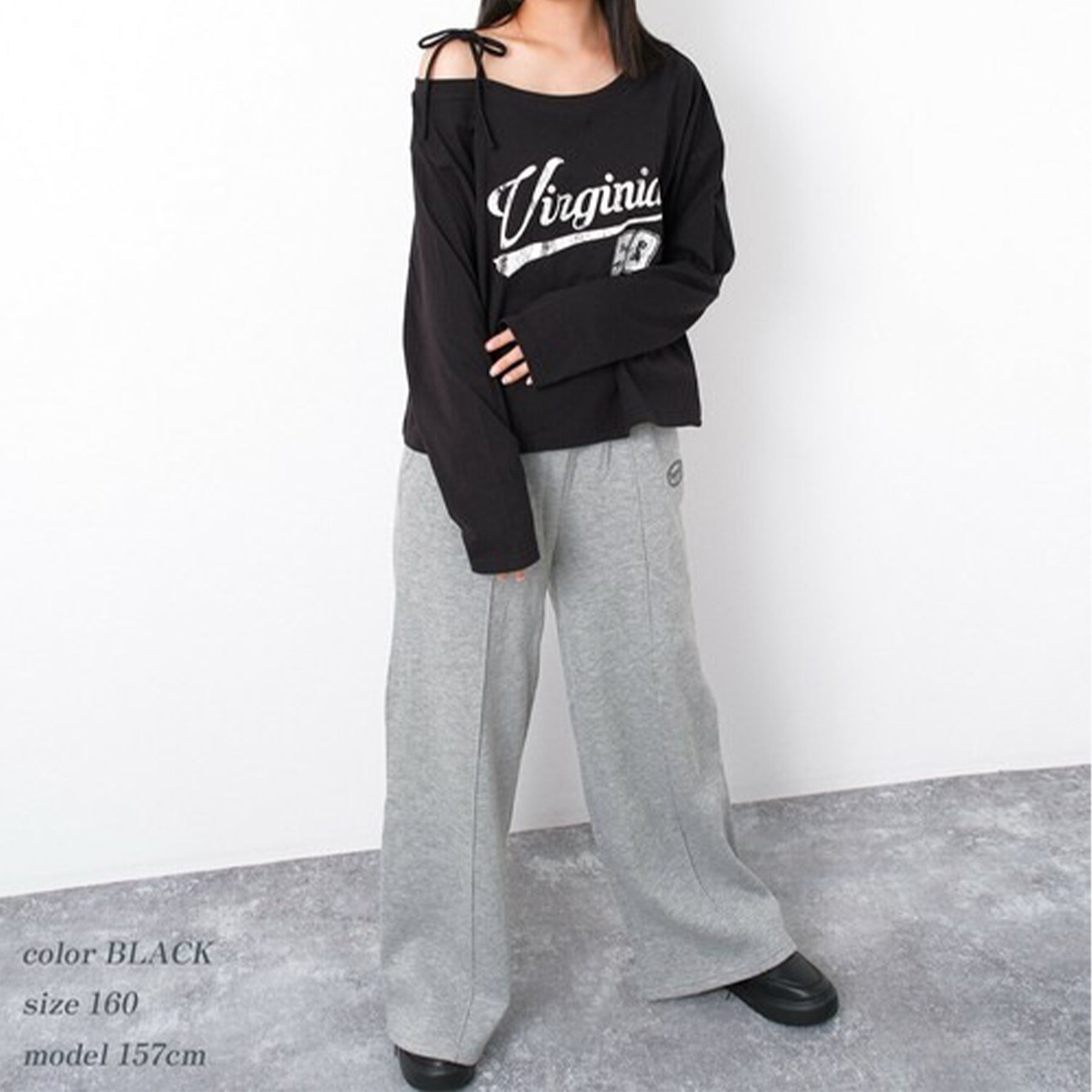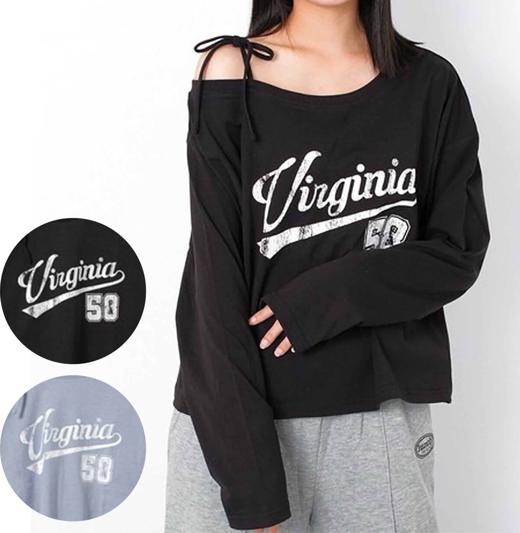 かすれプリントが施された抜け感たっぷりのワンショルロンTです。 アシンメトリーなネックデザインに添えられたリボンデザインがアクセントに◎ シンプルながらもコーデの主役になるアイテムです。 ※生地の透け感:淡色は透け感有り。インナー必須です。