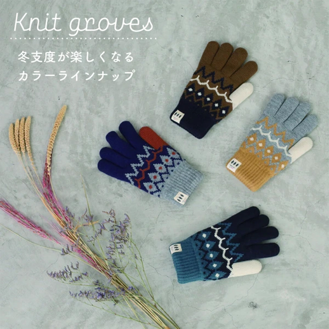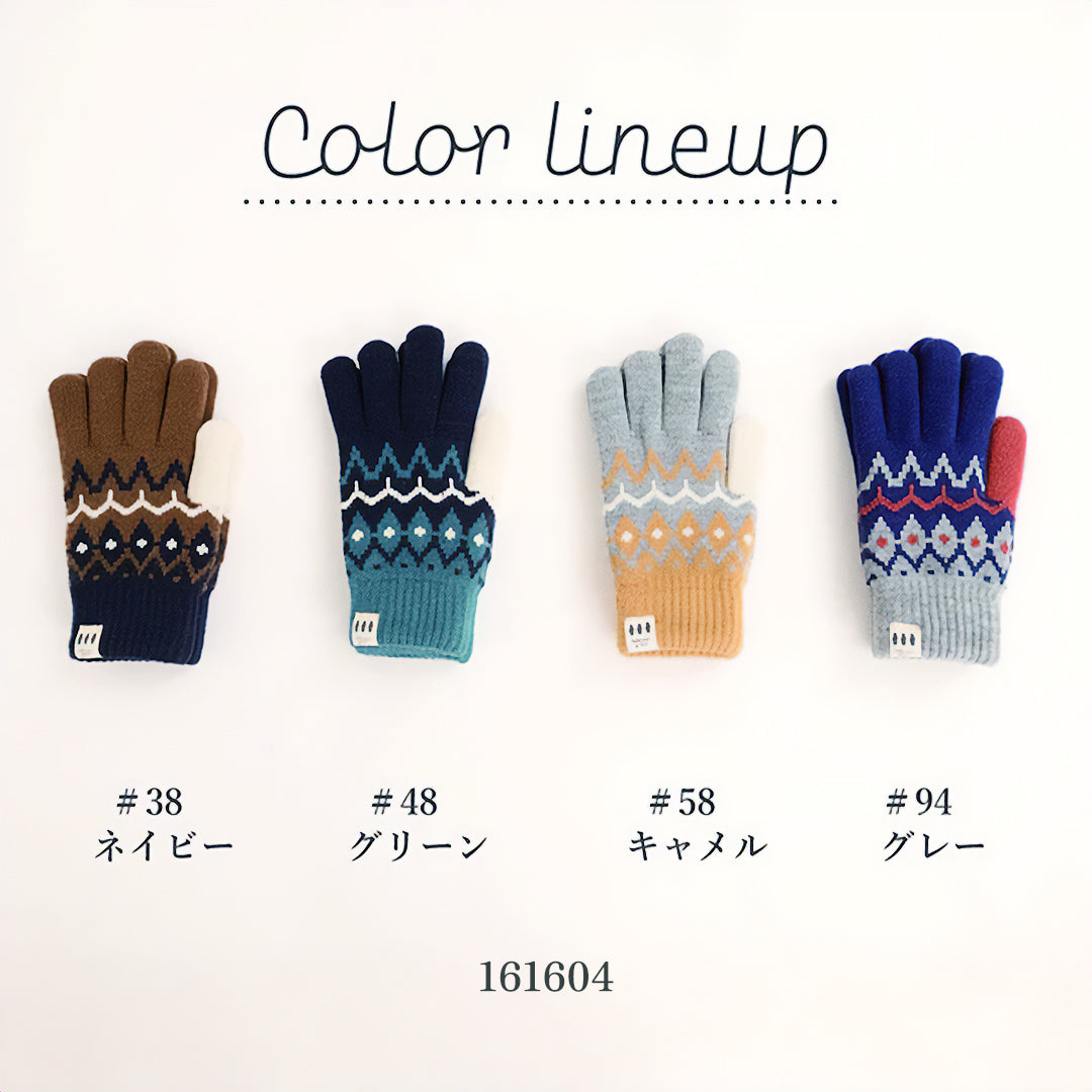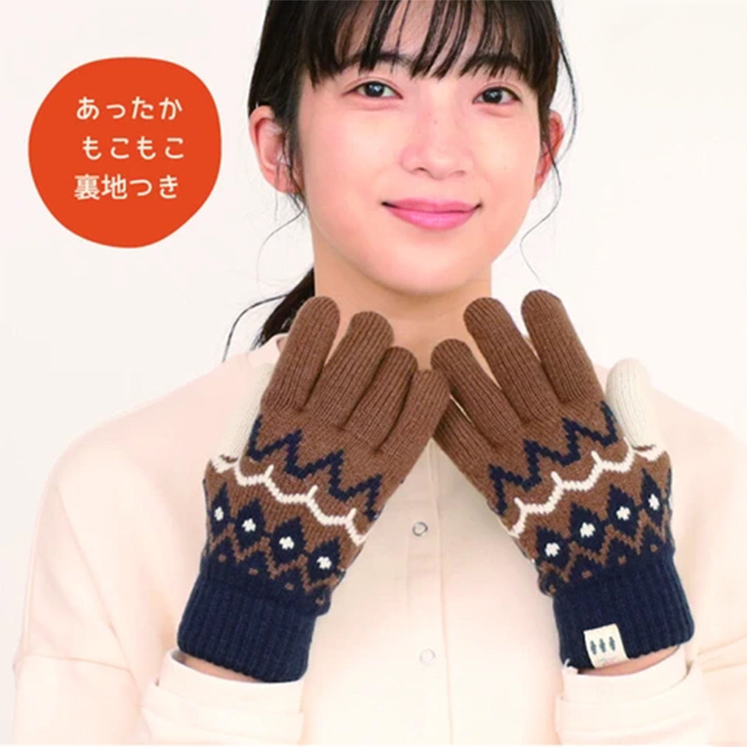 • フェアアイル柄手袋 もこもこ裏地付き レディース 大人 おしゃれ あったかい ボーダー モコモコ シンプル ベビー てぶくろ ミトン カジュ