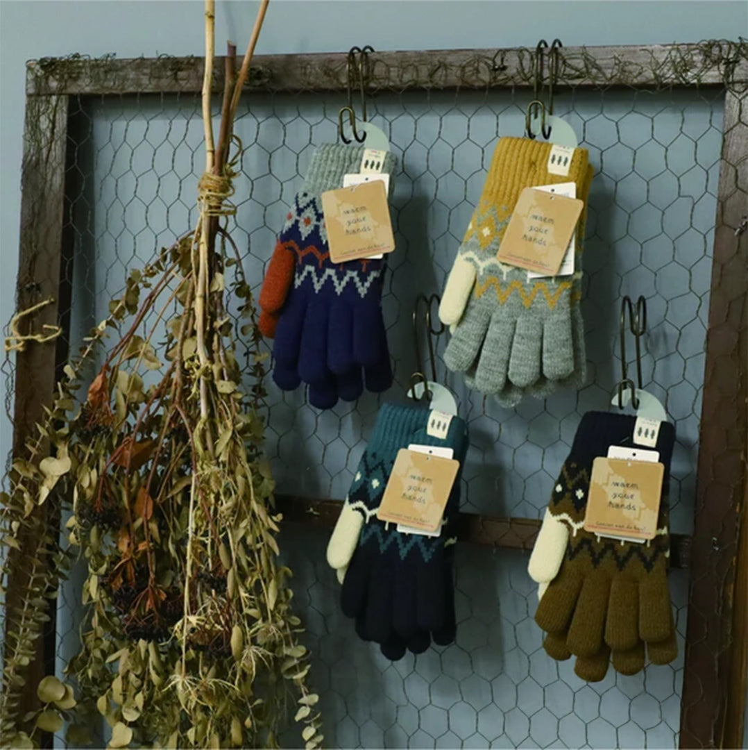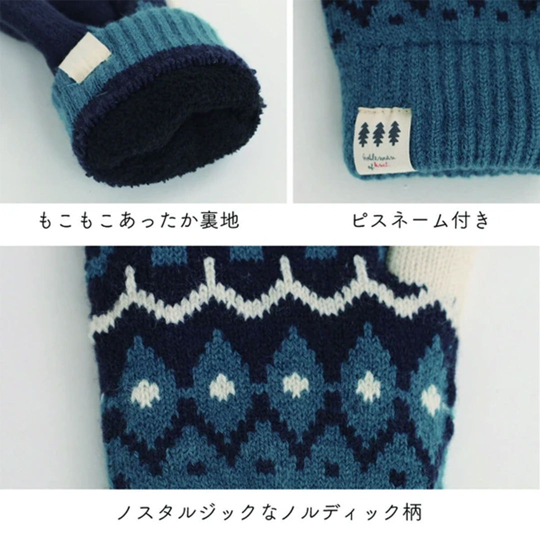 フェアアイル柄手袋 もこもこ裏地付き レディース 大人 おしゃれ あったかい ボーダー モコモコ シンプル ベビー てぶくろ ミトン カジュアル 普段使い