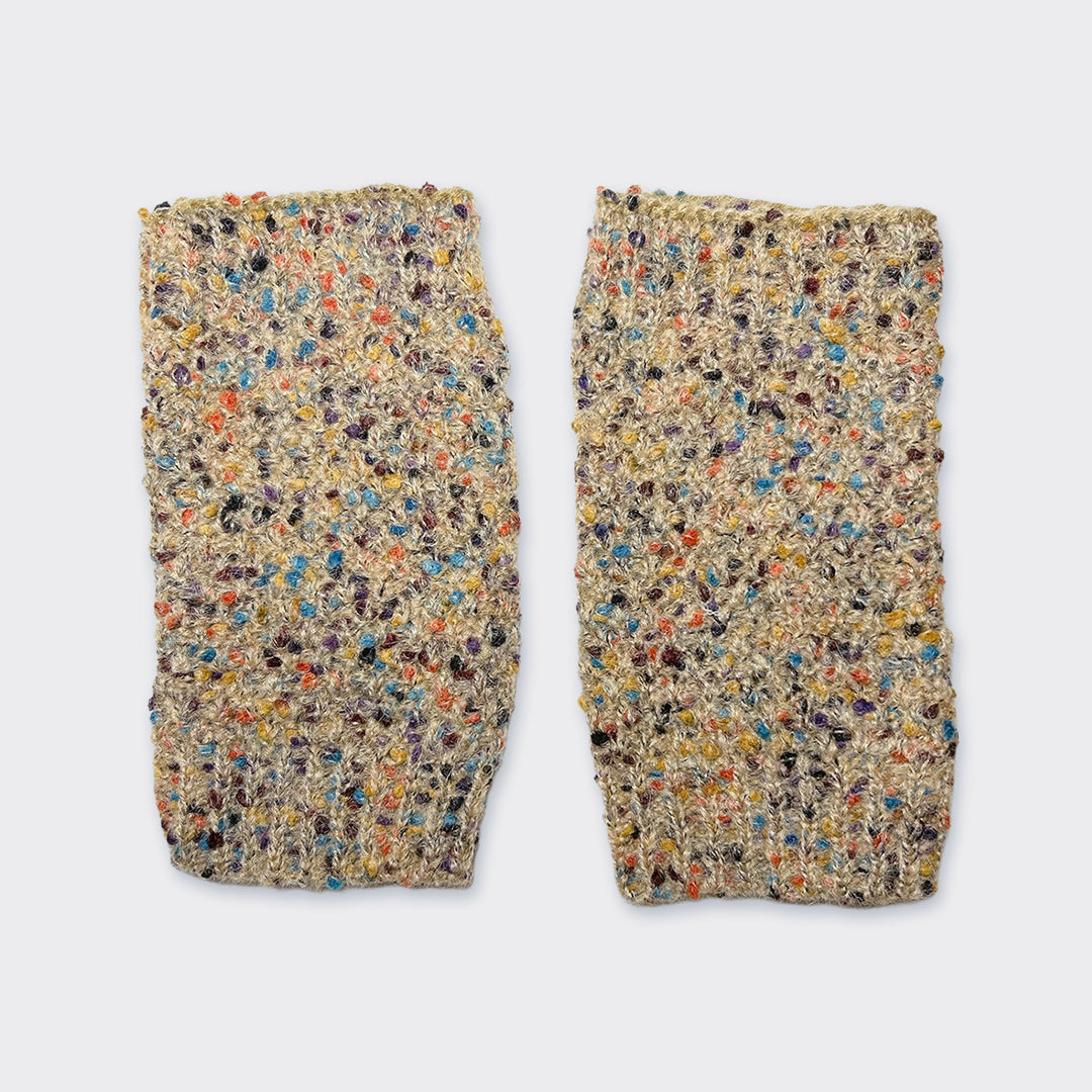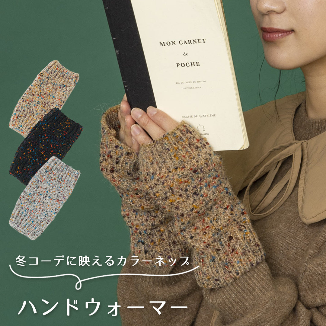 カラフルなネップがさりげなく映える、手元のおしゃれにぴったりなハンドウォーマー。