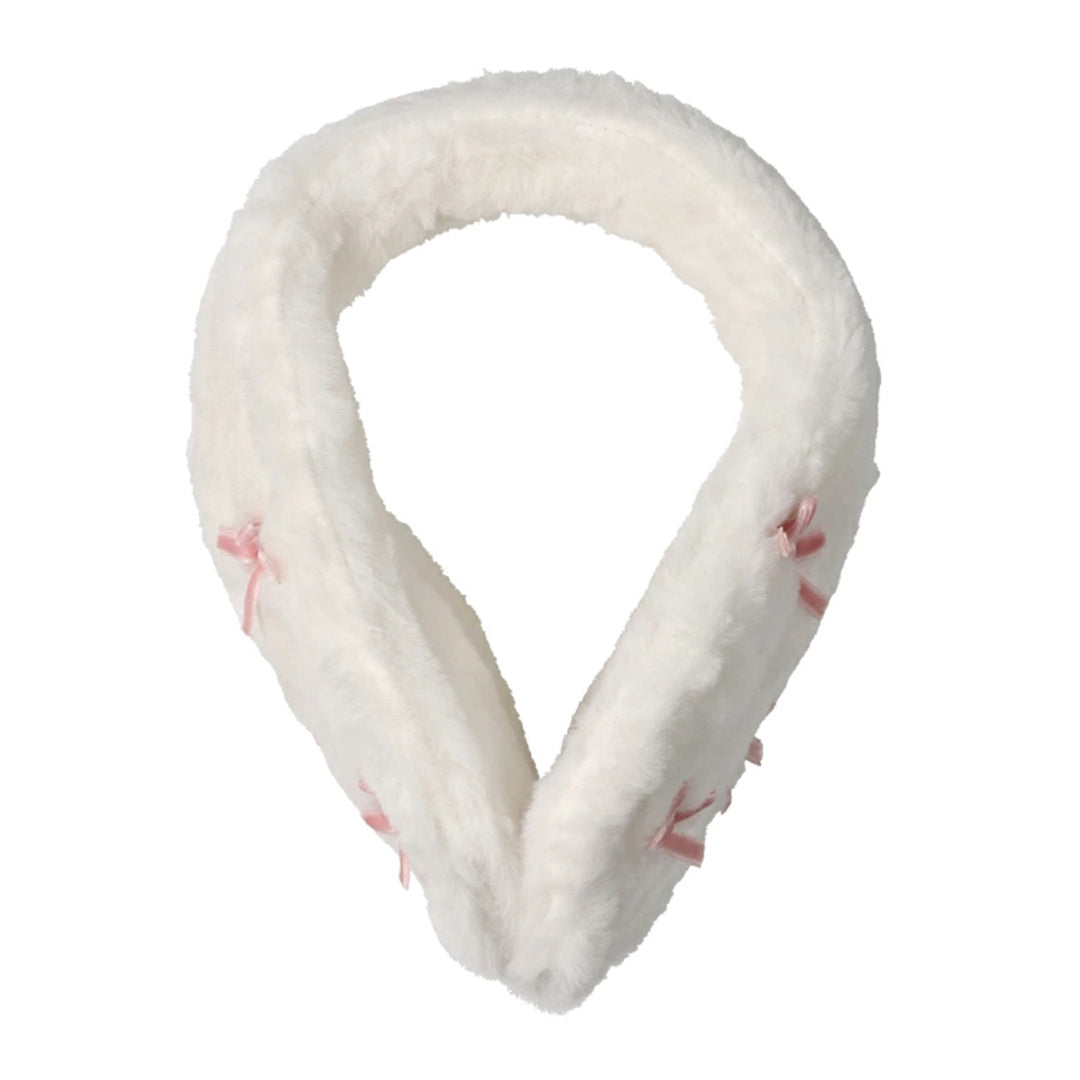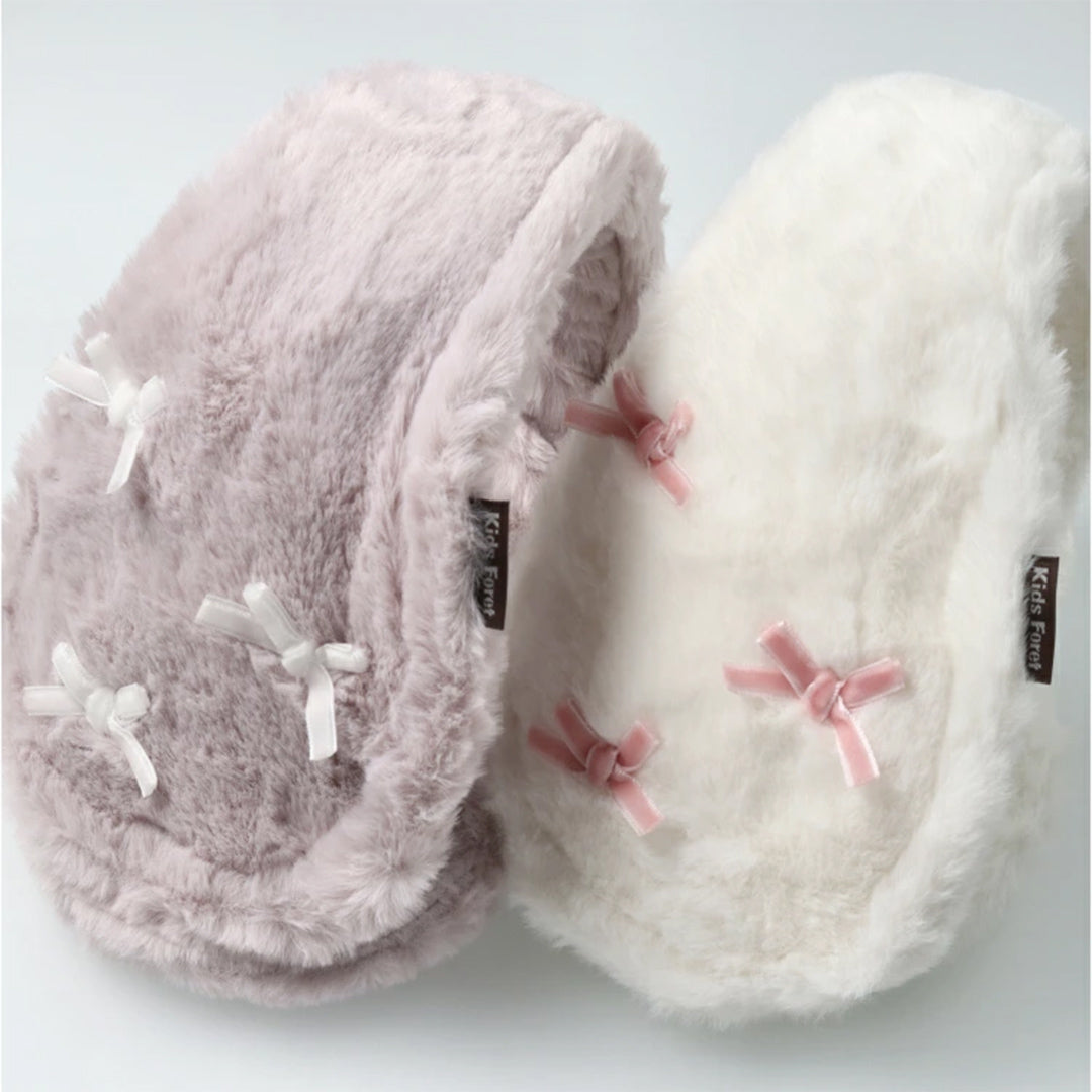 - Kids Foret イヤーマフ フェイクファー もこもこボア リボン付き ふわふわハート アニマル