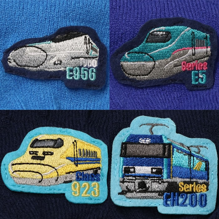 人気の新幹線のはやぶさ、ドクターイエロー、アルファX(エックス)、貨物列車のブルーサンダーのワッペンがポイントの手袋。