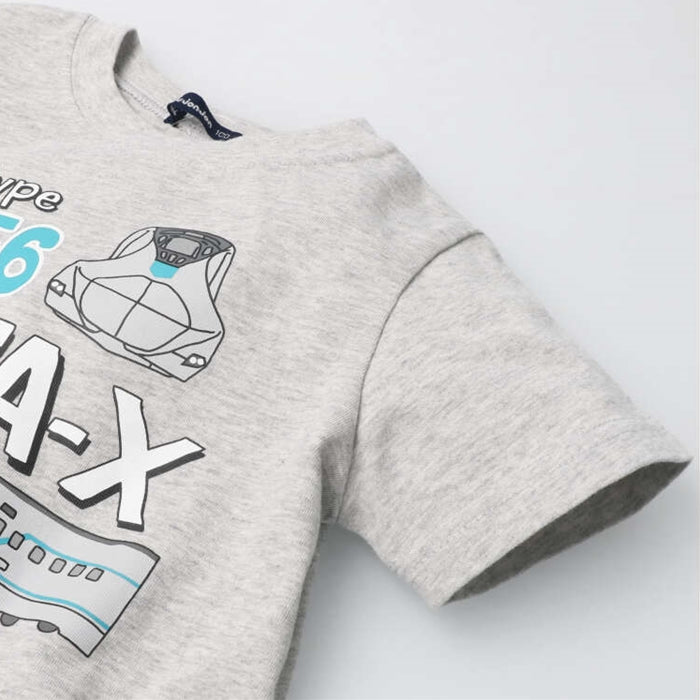 手描きタッチの電車のプリントが可愛い半袖Tシャツ。