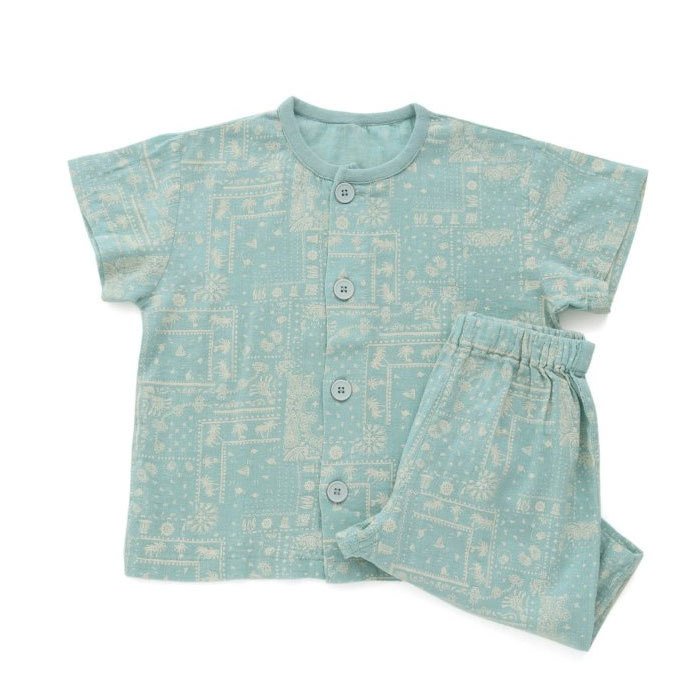 • 子ども パジャマ 寝間着 前開き キッズ ルームウェア 男の子 女の子 保育園 幼稚園 お泊り 半袖 部屋着 上下セット 綿