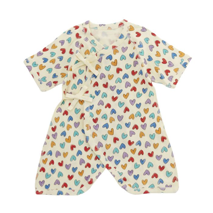 股下をスナップで止めるので、お腹のでやすい赤ちゃんが手足を元気に動かしてもおなかが出ることはありません。