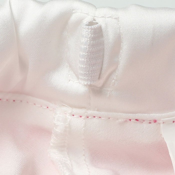 ウエストのキラキラシルバーのリボンが付いているので、トップスをアウトして着ても、インして着ても可愛く着られる!