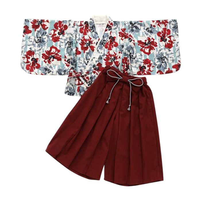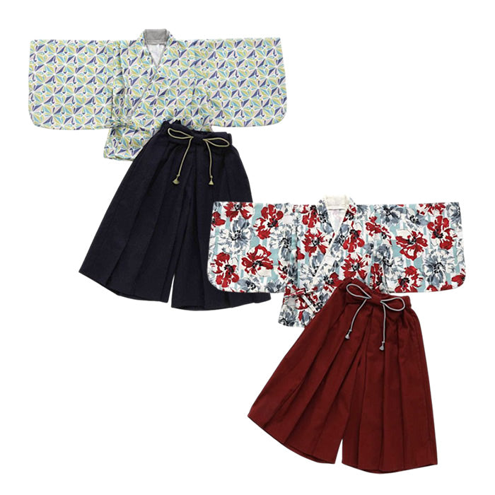 サイド開きデザインで着せやすく 可愛らしい姿に華を添える和柄の袴風カバーオールです